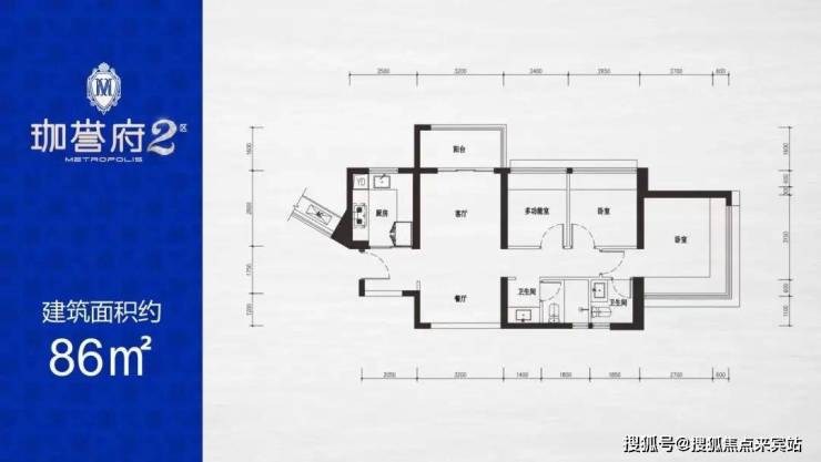 1栋1单元01/07的86㎡3房2卫是本次2区的全新户型。