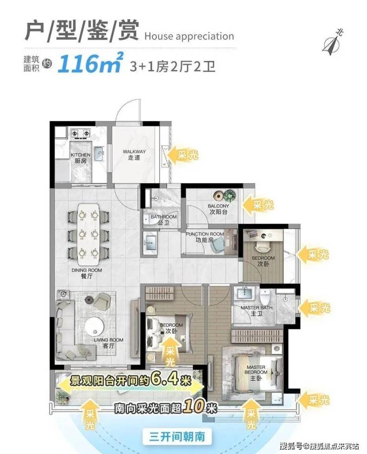 :双围合布局设计,使得最大楼间距达到了约110米,即使在寒冷的大寒之日,仍有70%的单位能享受到5-6小时的充足日照。