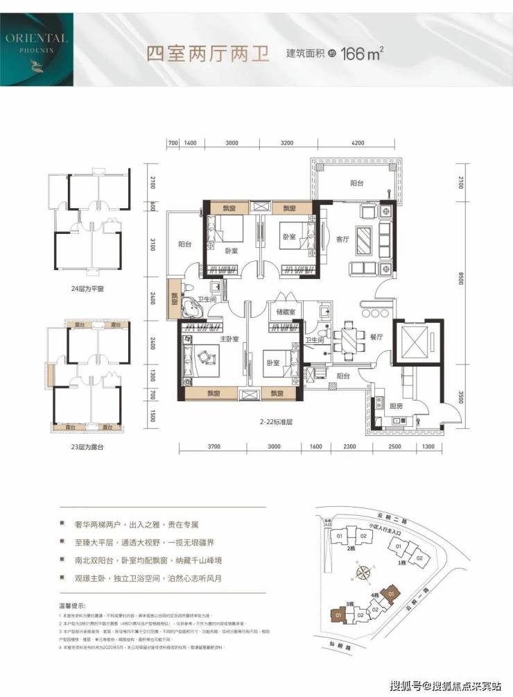 项目依傍梧桐半山,约166-188㎡四房大宅,三梯两户。纯板式结构,南北通透接纳更多梧桐绿意。