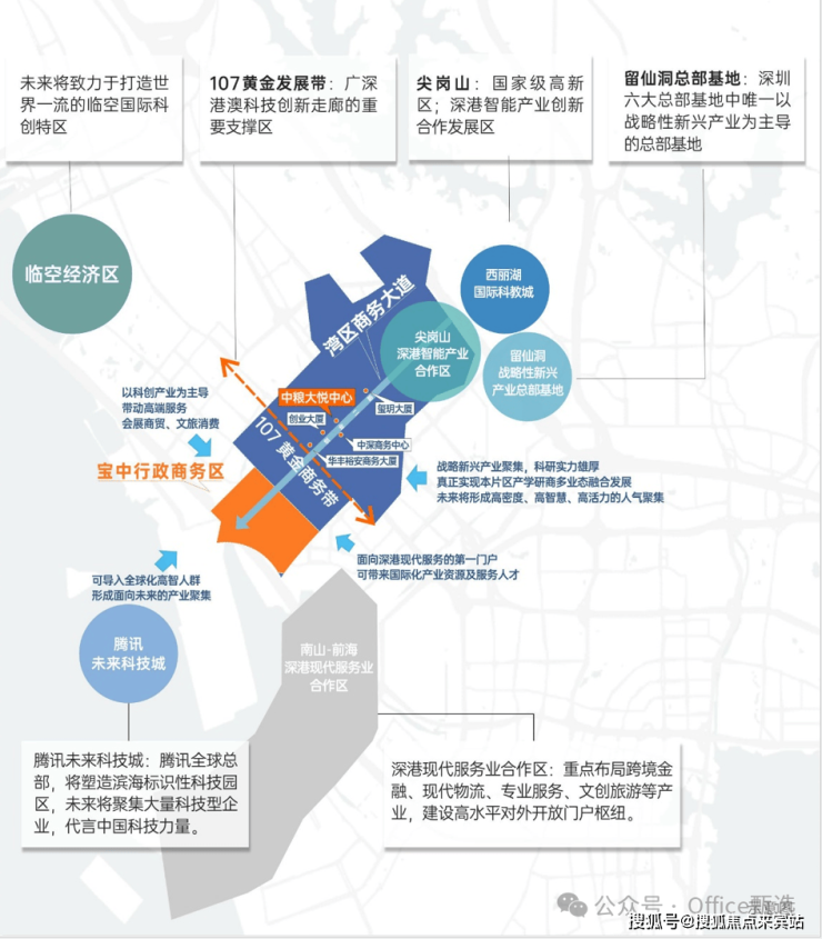 ● 向前对接前海宝中与企鹅岛,向后链接南山西丽创新智核,先进制造业产业全链条;深圳最大科技创新中心+西部最大智造工业区,开辟现代服务业“前海赛道”,培育软件与互联网业“超级黑马”,打造国际消费和贸易增长极。