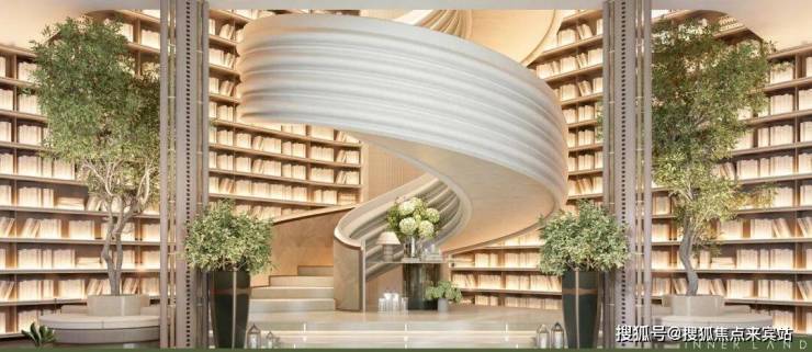 汲取白马庄园旋转楼梯灵感,定制局部挑高超9m万卷书屋,打造区域首个社区图书馆,上千本书籍静待翻阅。