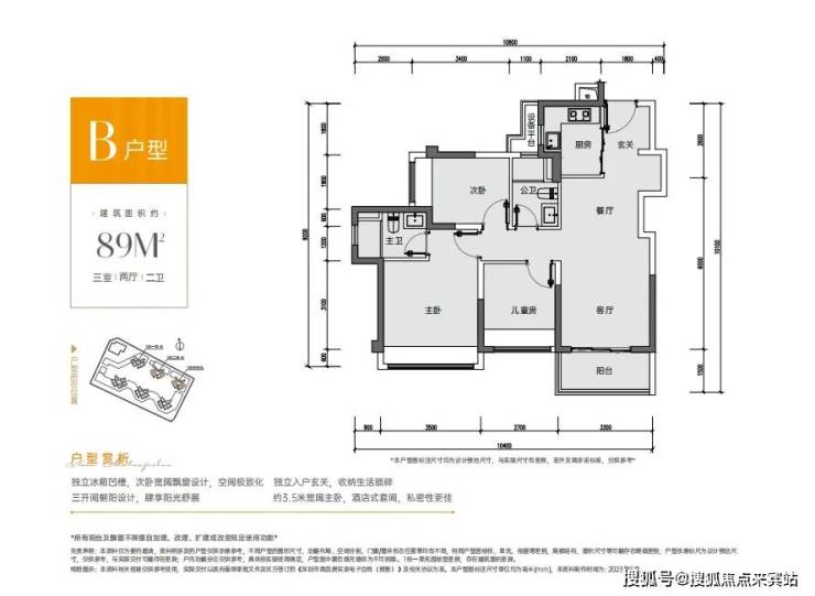 独立冰箱凹槽,宽阔飘窗设计,空间极致化