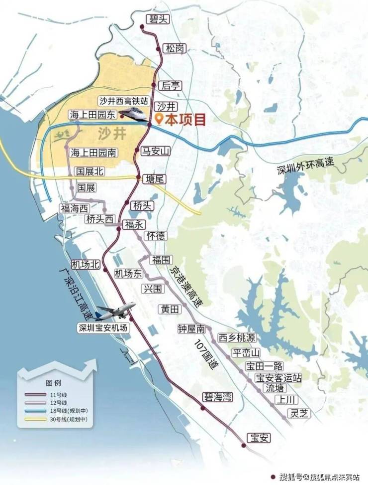 轨道交通:距离11号线“沙井站”直线约350米,步行550米,8-10分钟,6站直达宝安机场,8站宝中,9站前海
