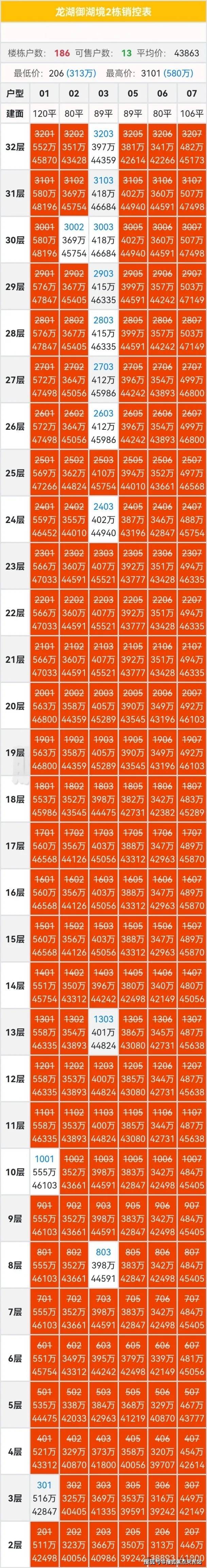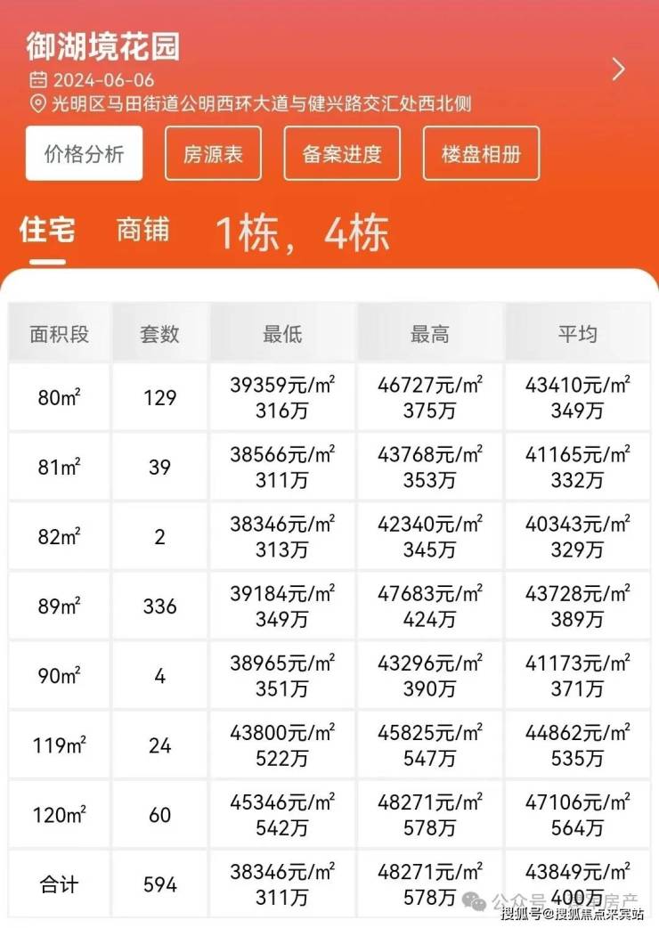 2024年6月6号加推了1栋,推出593套,面积80平-·20平,备案均价43847元,备案总价310万-578万,目前剩余214套,备案了379套,去化率63.91%。