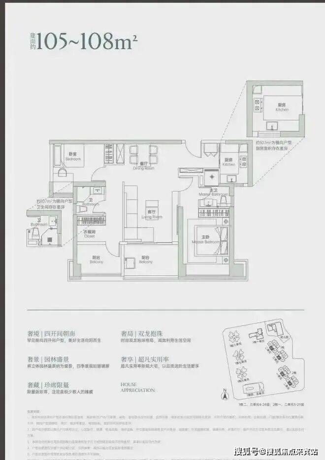 新世界香蜜四季主打全龄段改善户型,精准适配刚需、刚改与高端改善需求,主力面积涵盖105-280㎡三至六房,另有209-491㎡顶楼复式可选。全系遵循建筑新规,得房率高达92%-104%,低区3梯5户、高区3梯3户,105㎡三房采用“双龙抱珠”布局,122㎡以上户型搭配LDKB一体化设计,大平层配备270°环幕视野与专梯入户,无论是刚需小家庭、二孩家庭还是高端改善群体,新世界香蜜四季都能完美适配。