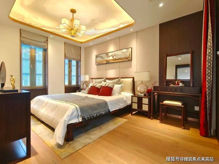 主卧室、书房、衣帽间、卫生间、休憩区、小阳台等糅合在这个整层空间里,度惊人,完美诠释了何为奢侈。