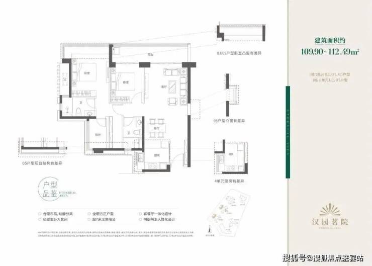 109-112 ㎡3房2厅2卫竖厅:经典竖厅布局,三、四单元,西北向,朝向地铁和城市道路,道路噪音对户型影响较大,高层视野开阔可俯瞰长岭陂水库和西丽生态绿地,背面阳台和边上的储物间可调整为一个房间,赠送面积较多,餐客厅方正,户型整体没有硬伤