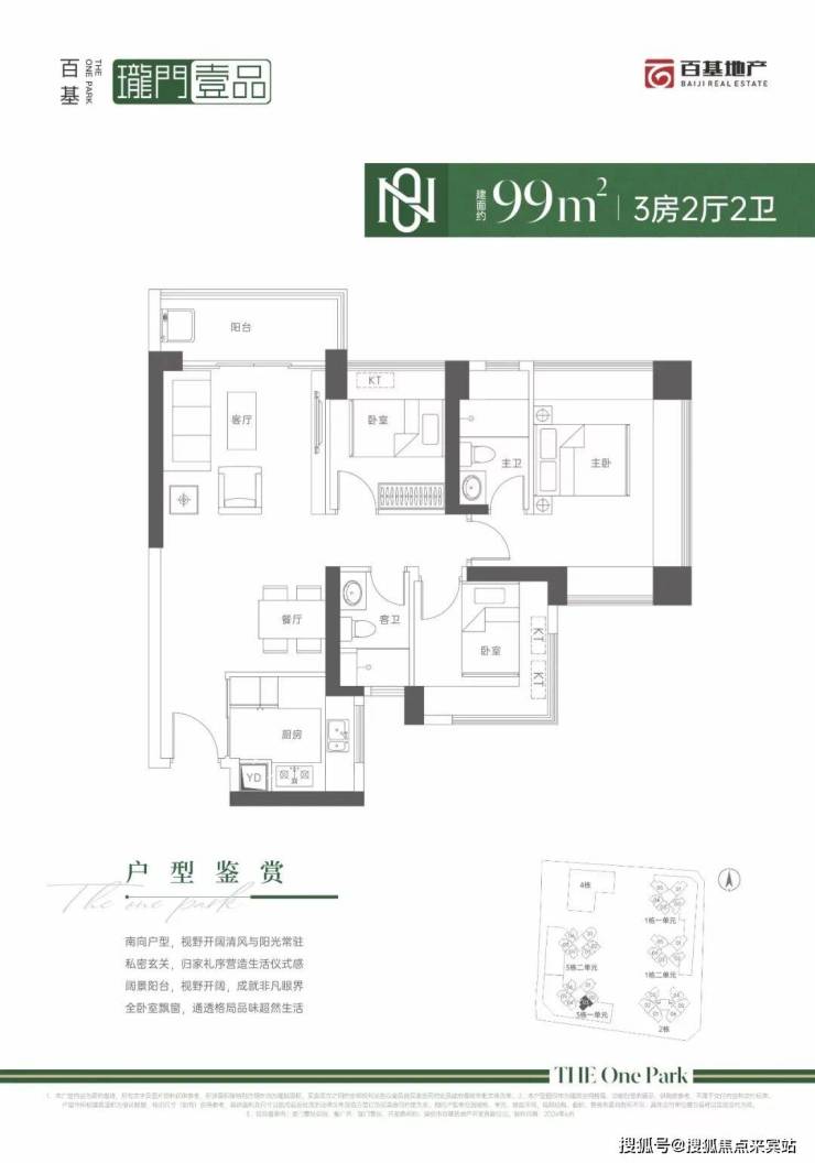99㎡的3房2厅2卫,设计的是经典竖厅格局,进门入户玄关,客厅3.9米开间,LDKB一体化设计,动静分区,四开间朝南,主卧三面飘窗,U型厨房,卫生间干湿分离,得房率:71.29%(不含赠送),东南朝向。