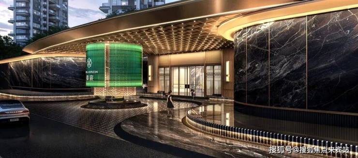 踏入社区,一眼震撼的便是超68米环岛落客大堂,名贵墨尔本黑奢石景墙,搭配香槟色金铝板,气场全开。
