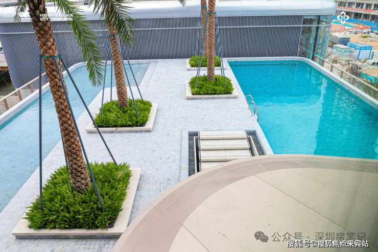 泳池区:成人区+儿童浅水区,度假酒店式植被