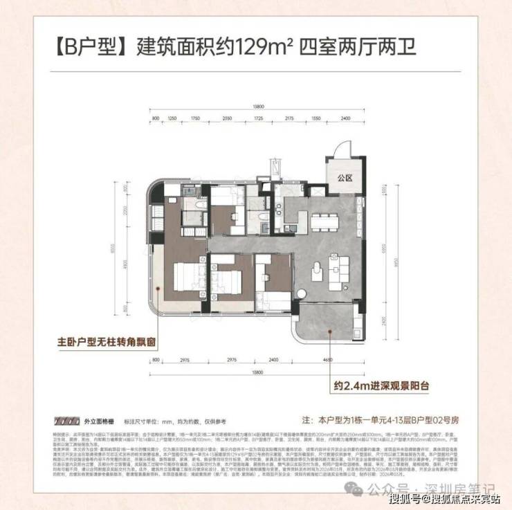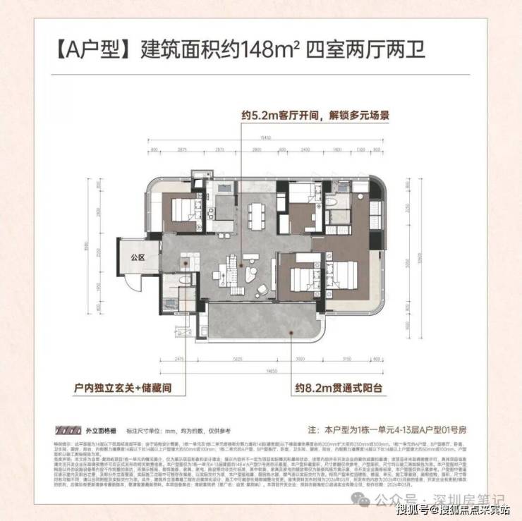 层高3.1米,3梯4户,全铝板+玻璃幕墙外立面(弧形线条设计),得房率约95-96%。小区内部配置泳池和泛会所。
