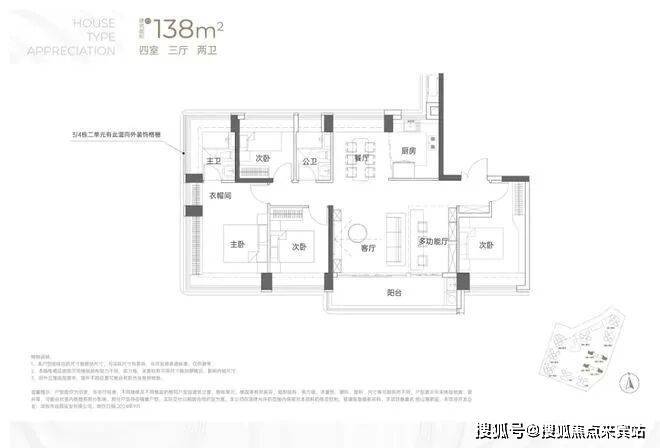 建面约138㎡4房2卫