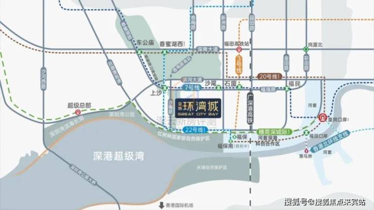 项目附近有7号线沙尾站和上沙站,还有规划中的22号线;自驾也很方便,从新洲路开车去深圳中心区约5分钟,从福强路去往深圳湾约20分钟车程。