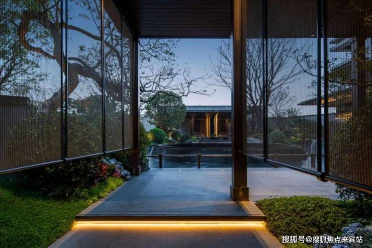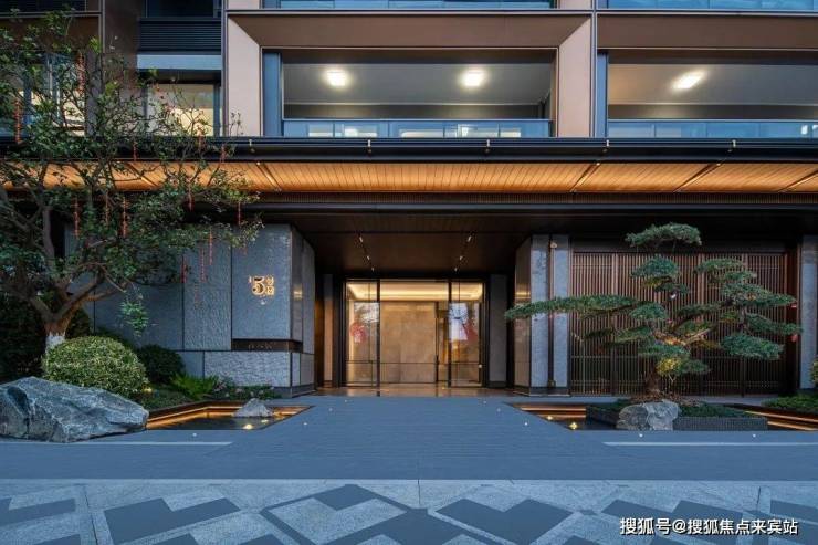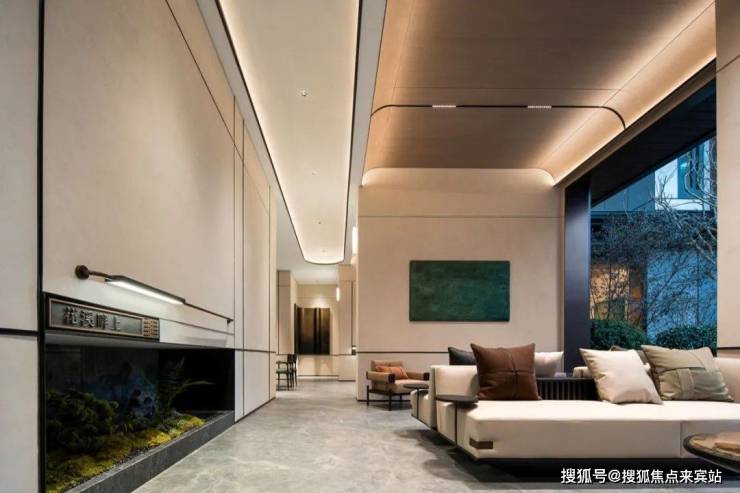 回到家楼下的入户大堂,均布置水景与植物环绕,尽显归家的东方诗意。