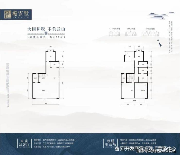 :户型设计灵动、宽敞,使用率高,景观视野开阔,注重居住体验与空间感。