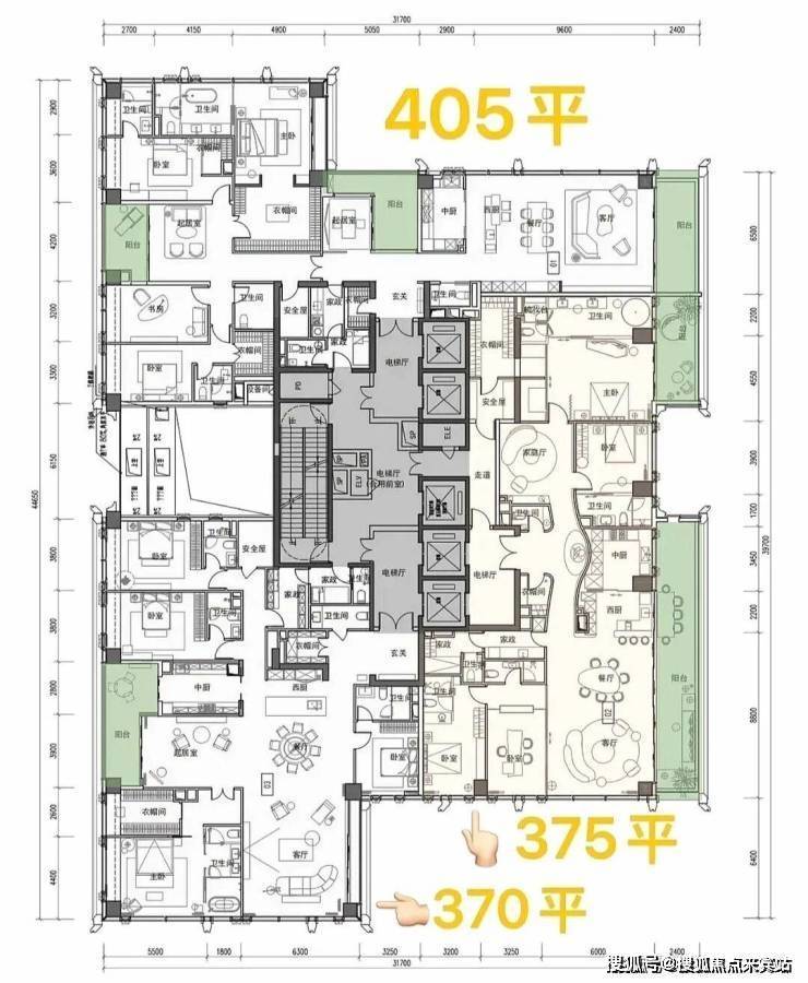 产品纯粹性突出,主力户型 209-430㎡四至五房,顶层复式达 1050㎡,无小户型混杂。内部尺度奢阔,3.6 米层高、2.4 米宽景阳台、高区 5 梯 3 户专梯入户,实用率超 92%。精装标配国际一线品牌,搭载华为全屋智能系统,复合幕墙与加厚楼板强化静谧性。