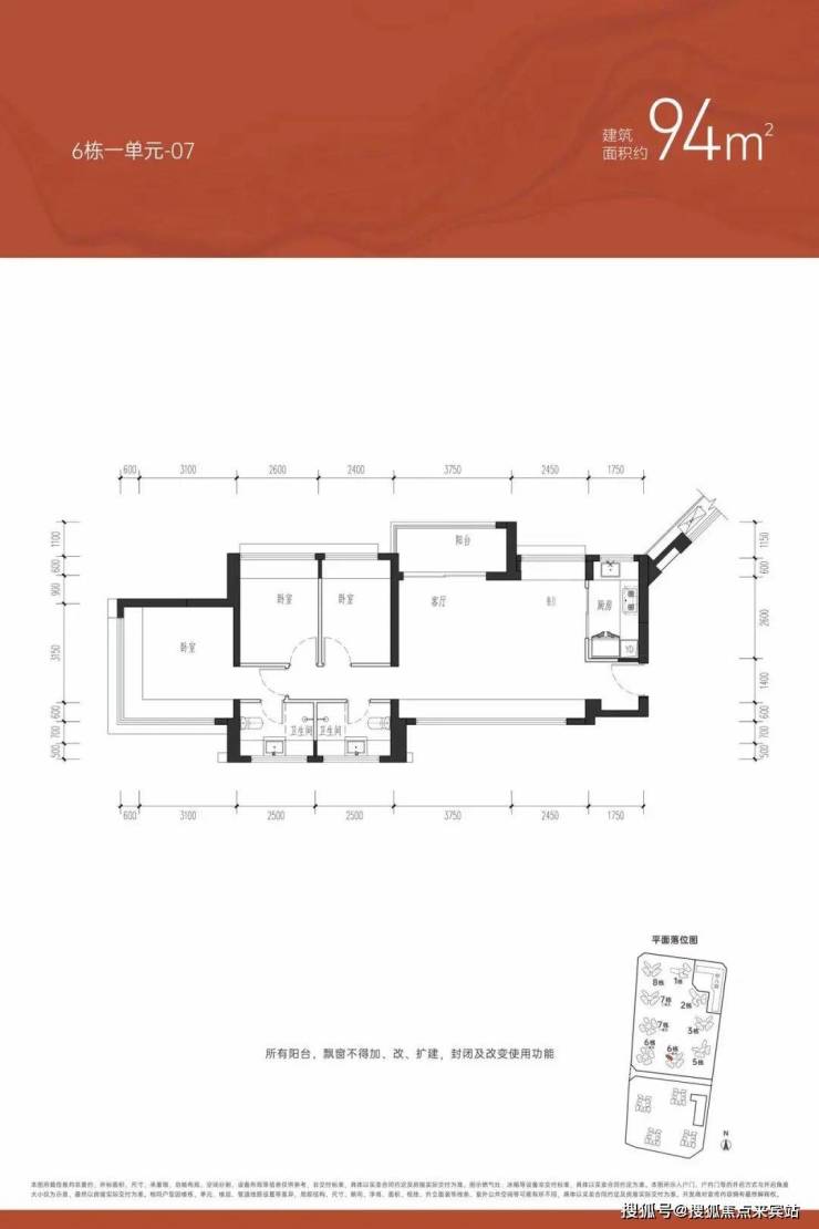 【约76㎡三房一卫】户型分布:只分布在6栋2单元和7栋1单元,共258套