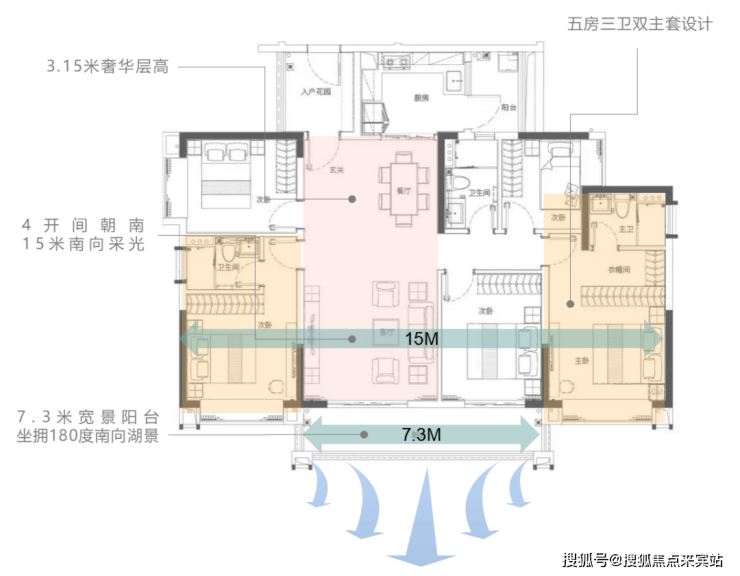 广地花园·观灏,精心考究建筑与空间的朝向布局,筑就建面约162㎡奢华湖景双主套五房,适配全龄段买家,一家三代人都能拥有相对独立的空间,理想生活莫过于此。