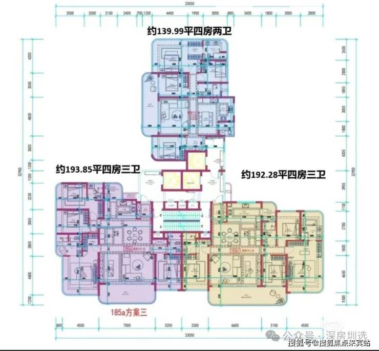 330㎡4+1房五卫+家政套间,2梯2户,总价约5000万(15.2万/㎡)