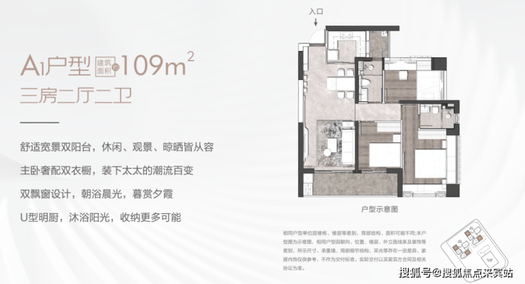 特别是109平户型,在3房2厅2卫的基础上,竟然还打造了舒适宽景双阳台,而且主卧配备双衣橱,空间利用非常到位,展现了普通120平户型才能呈现的空间尺,就算是三代同堂,也完全够用。