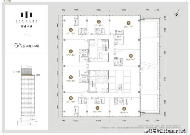 其中6A栋为6-35层为办公,37-42层为公寓;6B栋6-9层为酒店,10-42层为公寓。