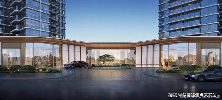 ◎长达约120米弧形主入口界面,城市级封面门庭,集萃名贵奢石臻造,铺陈都会风华,礼遇当代门庭,呈现繁华CBD里的曼妙意境。