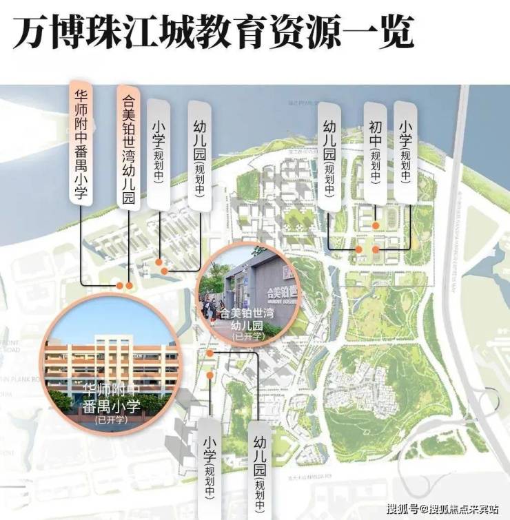 其中配置24班华师附中番禺小学及12班公立合美铂世湾幼儿园(已开学)