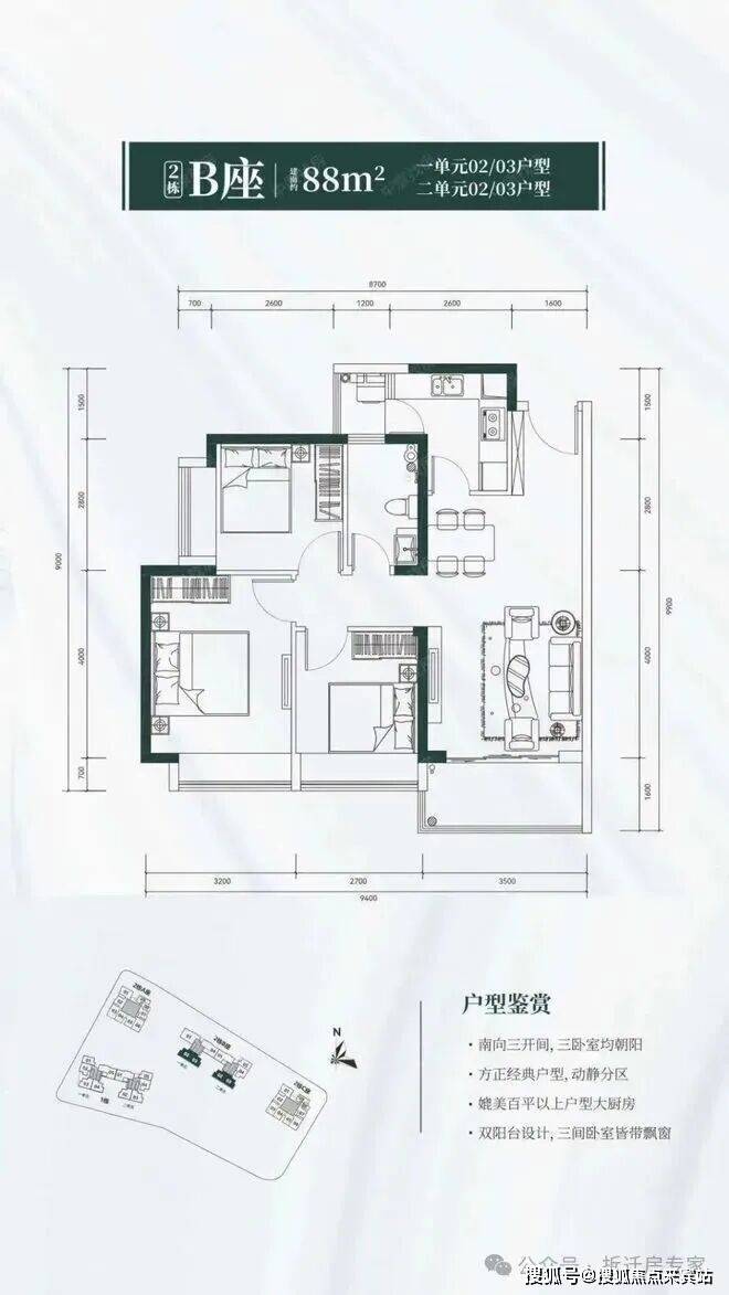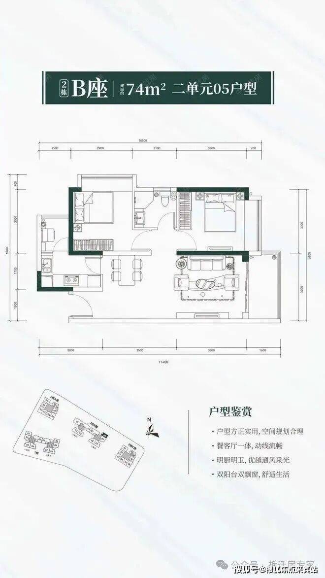 户型简介双阳台,全阳光户型
