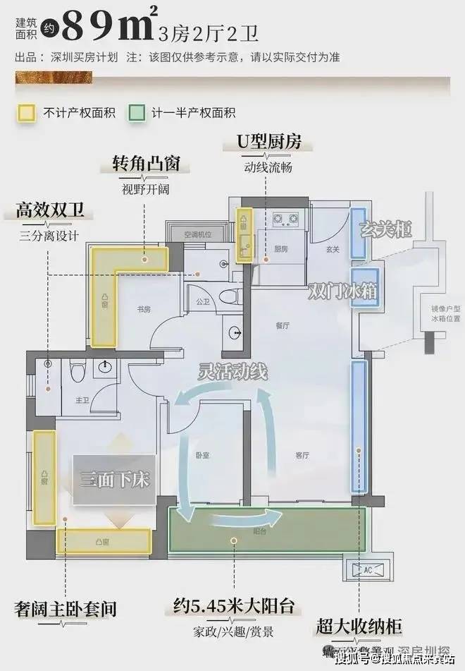 89㎡的3房2厅2卫,折后总价260-310万/套,单价2.92-3.48万/㎡。