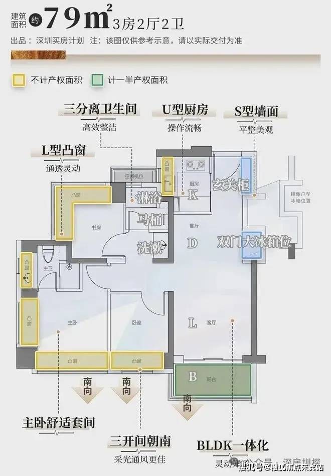 同样是经典竖厅布局,延续了约79㎡户型的种种优势,甚至还更进一步!
