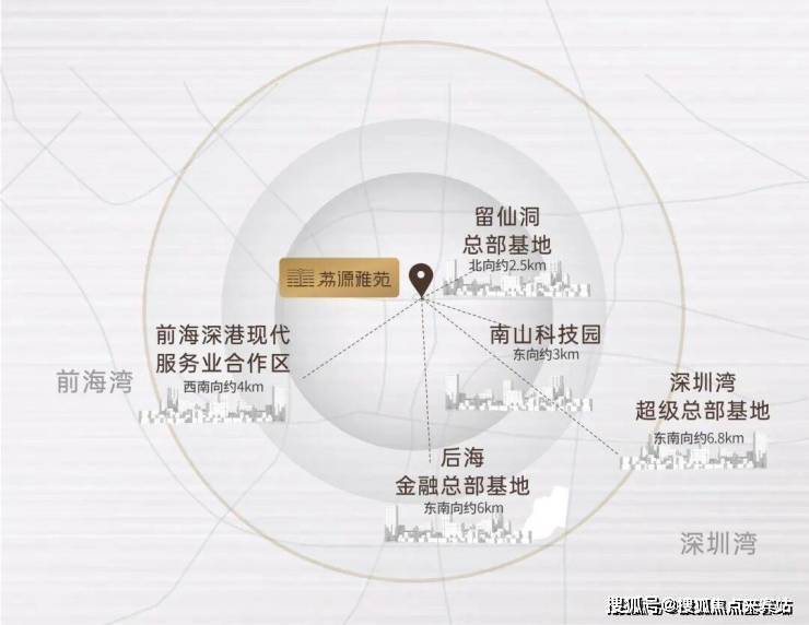 后海金融总部基地、深圳湾超级总部基地(东南向约6km):中国总部企业最为密集区域之一,规划就业人口约为54万人。