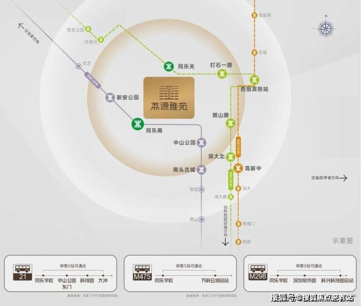 15号线(建设中)同乐关站(直线约1.5km),2站到西丽高铁站,贯穿前海、后海、南山、宝安等重要片区,环经济发展核心区域。