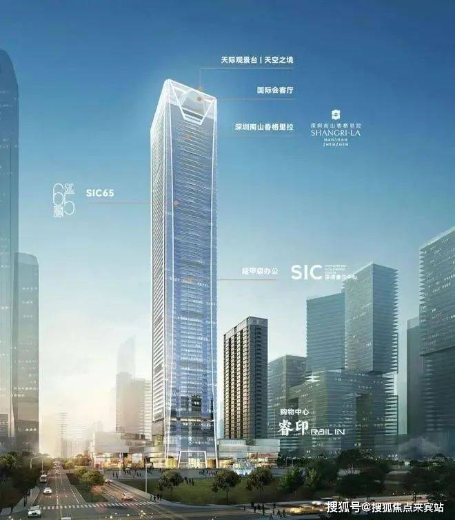 项目位于位于南山区,高达358米,共80层,分别布局高端商业Mall超深活中心、超甲级写字楼、SIC65办公商务会馆、香格里拉酒店四大场域,是深超总首个350m+超高层综合体。