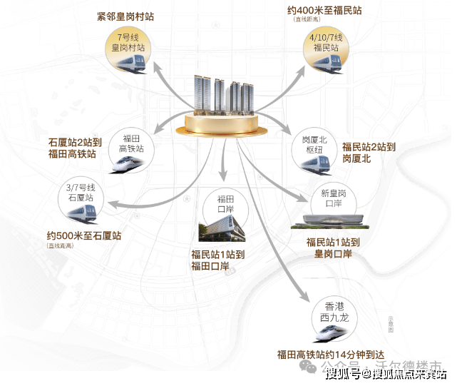 ·1站双口岸 ·2站福田高铁站 ·2站岗厦北枢纽 ·双地铁口 四地铁线