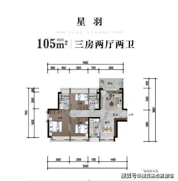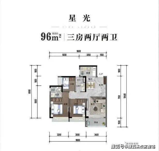 主力户型为建面约 95-122㎡的三至四房,有 95㎡“星月” 户型、96㎡“星光” 户型、105㎡“星润” 户型和 122㎡“星云” 户型等,户型方正,全明通透,多飘窗赠送,采用干湿分离、动静分离设计。