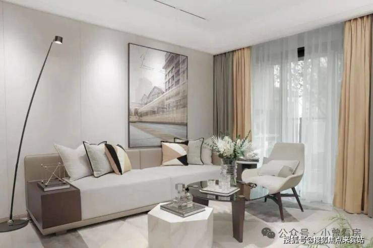 114㎡的旅游样板间更加摩登现代,客厅以黑白灰为主色调,低调优雅,明亮的黄色跳跃其中,让人眼前一亮。