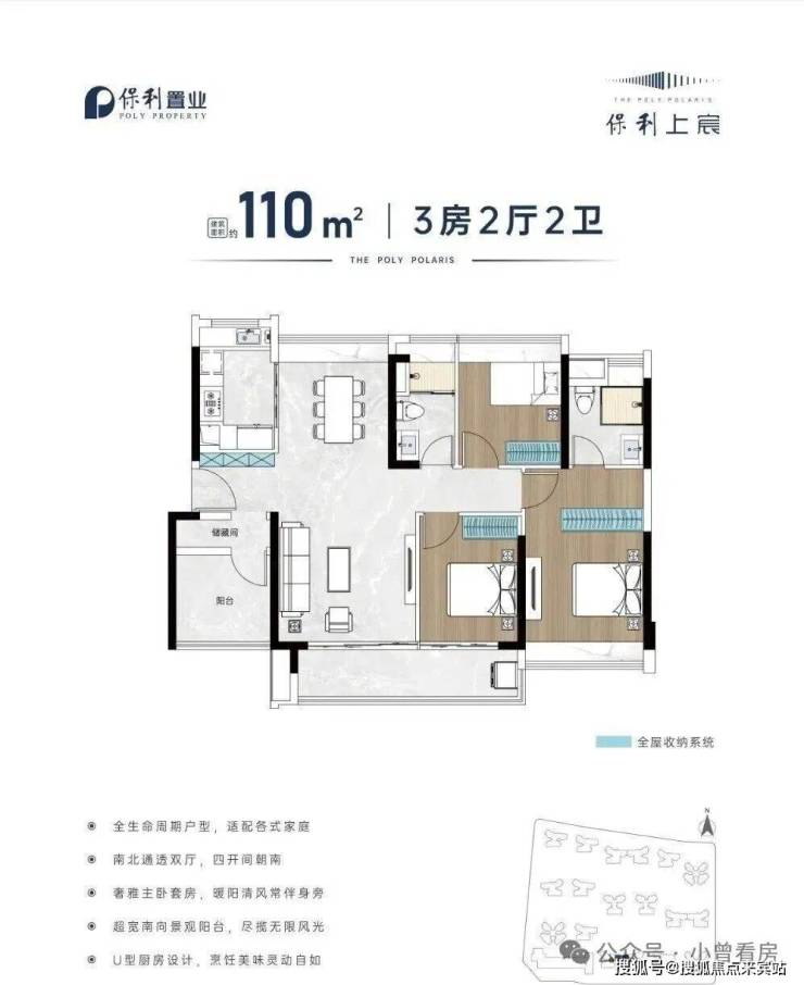 110㎡:保利轻奢户型 南北对流 四开间南向