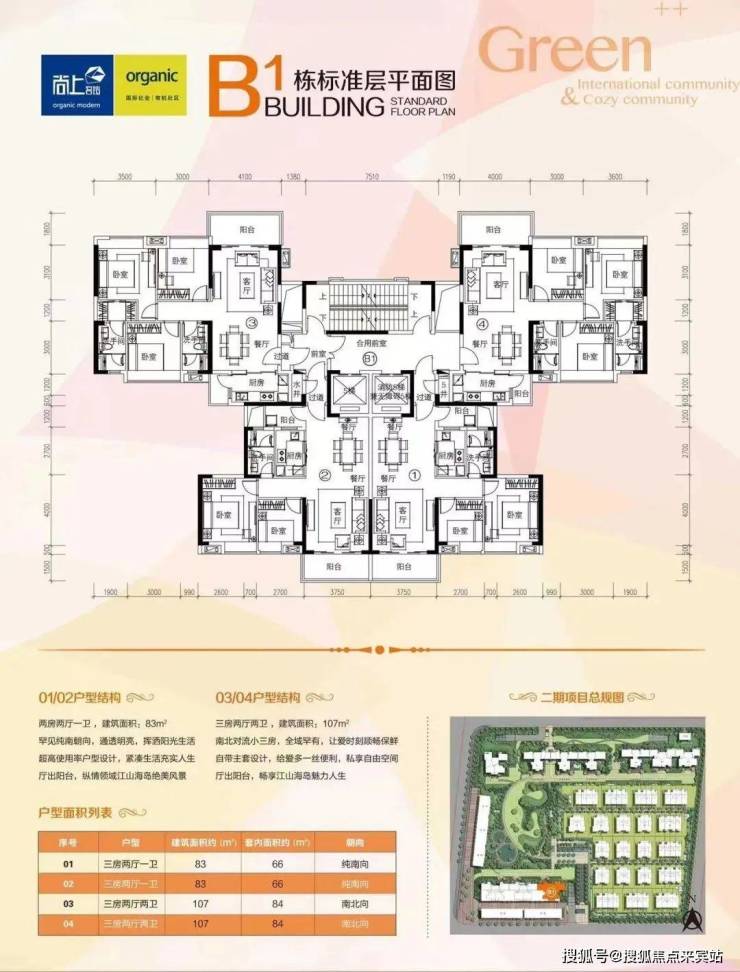 洋房【户型优点】:两梯四户、方正实用、高层、户户朝南