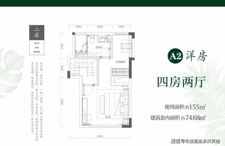 二期在售户型2:跃层洋房74.68㎡三房一厅