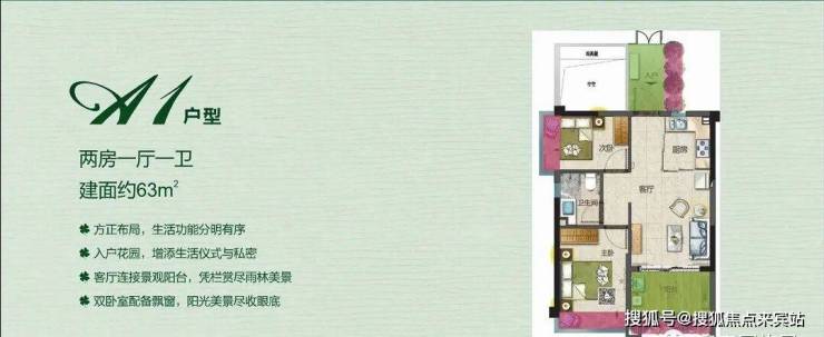 三期在售户型2:高层住宅63㎡两房一厅