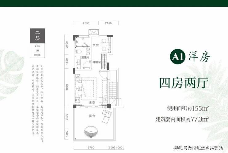 二期在售户型1:跃层洋房77.3㎡三房一厅