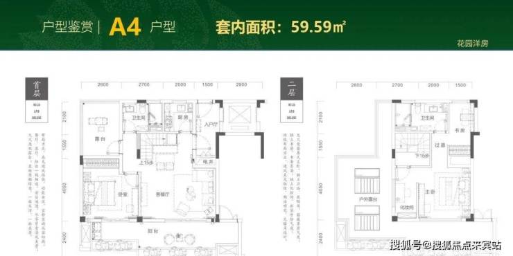 二期在售户型4:跃层59.59㎡三房一厅