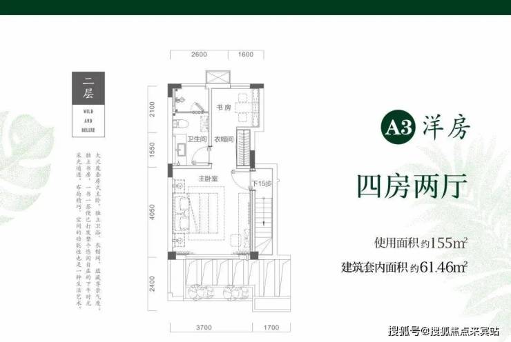 二期在售户型3:跃层洋房61.46㎡三房一厅