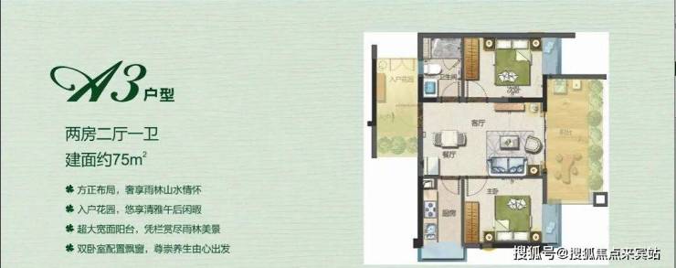 三期在售户型3:高层住宅75㎡两房一厅