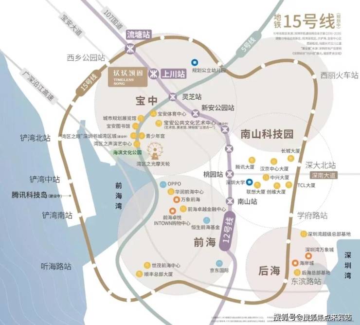实现了深圳重要经济总部人才的流通,通过地铁3站到宝中,6站到南山,10站可达福田。开车出行通过新安四路转宝安大道,107国道15分钟可到前海宝中,连接北环、滨海、深南,20分钟可达南山,30分钟可达福田