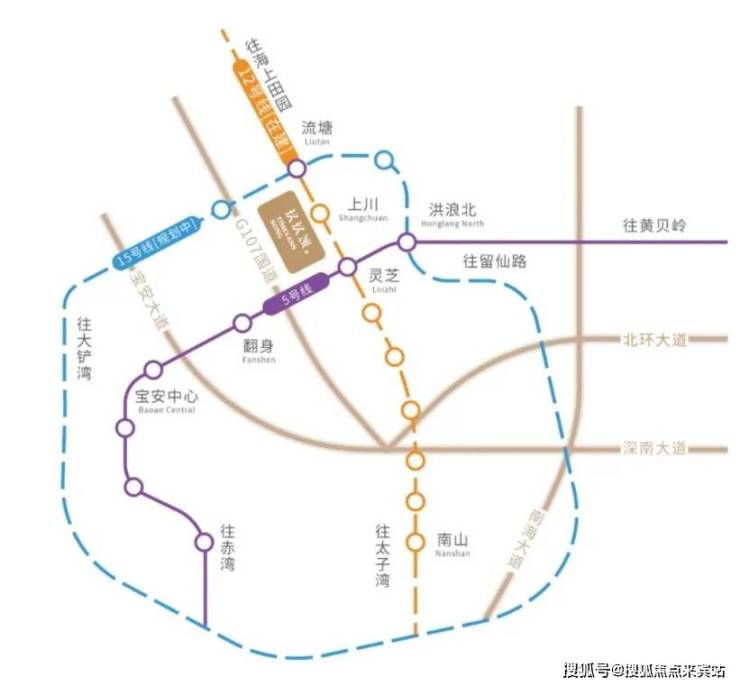 家门口的双地铁,半小时通达全城项目距离12号线上川站F2出口约100米;距规划中15号线(流塘站)约700米;北环大道、G107国道、宝安大道在侧,半小时通达全城。
