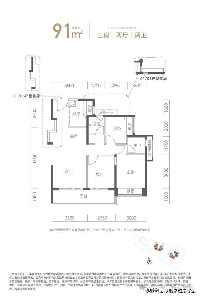 建面约91m²3房2厅2卫南向6.25米大阳台