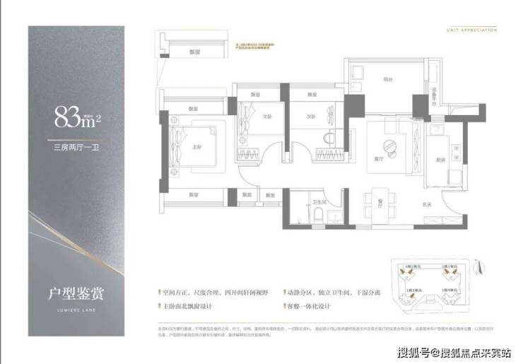 •产品:建面约83-113㎡3-4房品智美学住宅,多面宽朝阳,揽清风入怀;