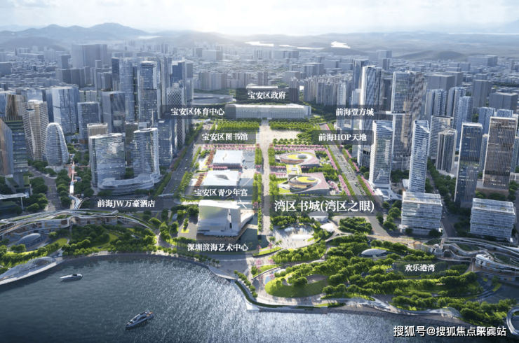 “湾区之眼”位于前海城市新中心与宝安中心区滨海绿轴东侧,直连深圳地铁5号线宝华站,以13.1万平方米的“双玉盘”建筑形态自然融入滨海绿轴。