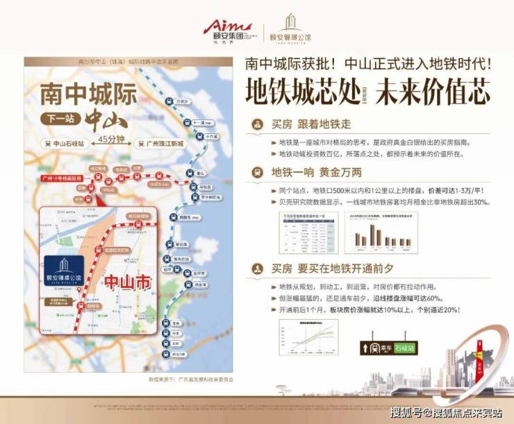 南中城际中山段(在建中)——家门口石岐站,未来约45分钟直达珠江新城。左拥中山北站,右临中山站,畅享1小时湾区生活圈。项目直连起湾道、世纪大道、北环路,约15分钟可达深中通道出口,约30分钟可达广州南沙。